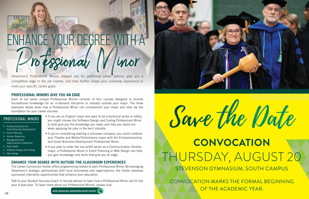 Stevenson’ s Professional Minors prepare you for additional career options, give you a competitive edge in the job market, and help further shape your university experience to meet your specific career goals.