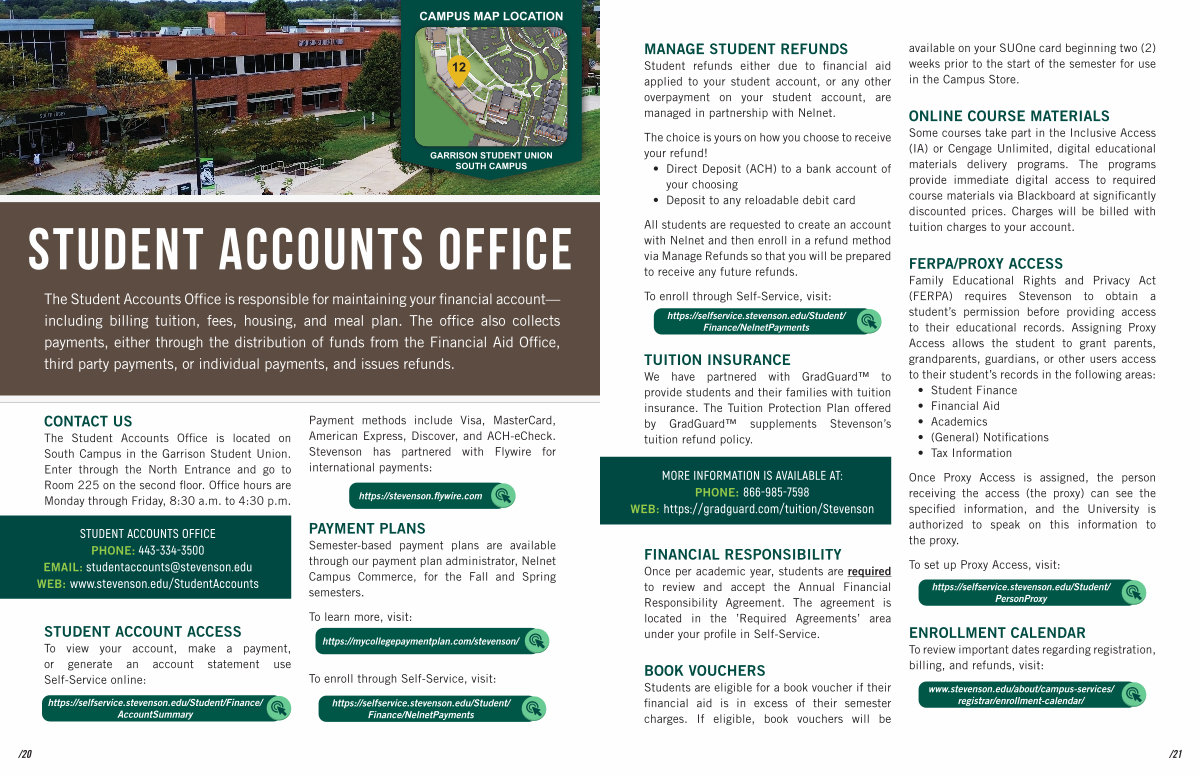 STUDENT ACCOUNTS OFFICE PHONE: 443-334-3500 EMAIL: studentaccounts @ stevenson. edu WEB: www. stevenson. edu / StudentAccounts