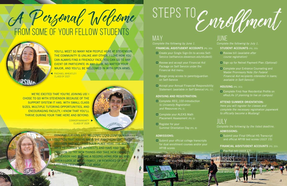 Get ready to start your first year! More information about August events and Welcome Week will be provided at Summer Orientation!
