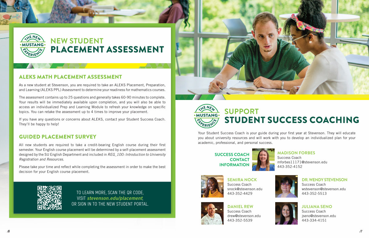 Your Student Success Coach is your guide during your first year at Stevenson. They will educate you about university resources and will work with you to develop an individualized plan for your academic, professional, and personal success.