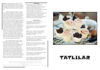 9 Chander P. Arora. p. 89 10 L. Marjamäki at all.” Maternal intake of vitamin D during pregnancy and risk of advanced beta cell autoimmunity and type 1 diabetes in offspring” Diabetologia( 2010) 53:1600
