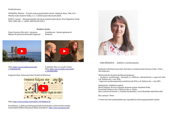 Pro představu , z jakého prostředí gregoriánský chorál pochází , možno navštívit stránky francouzského kláštera Royaumont abbaye & fondation : https :// www . royaumont . com /