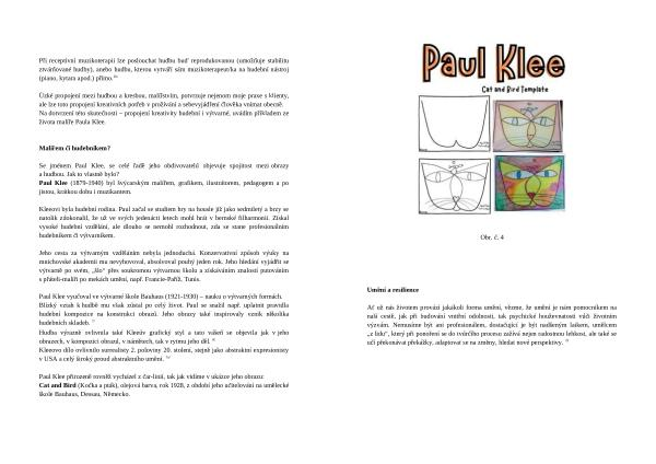 Úzké propojení mezi hudbou a kresbou , malířstvím , potvrzuje nejenom moje praxe s klienty , ale lze toto propojení kreativních potřeb v prožívání a sebevyjádření člověka vnímat obecně . Na dotvrzení této skutečnosti – propojení kreativity hudební i výtvarné , uvádím příkladem ze života malíře Paula Klee .