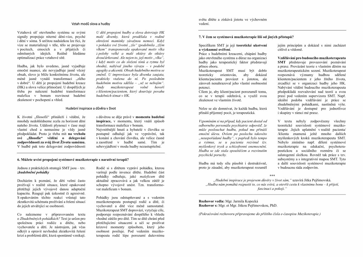 6. Můžete uvést propojení systémové muzikoterapie s narativní terapií?