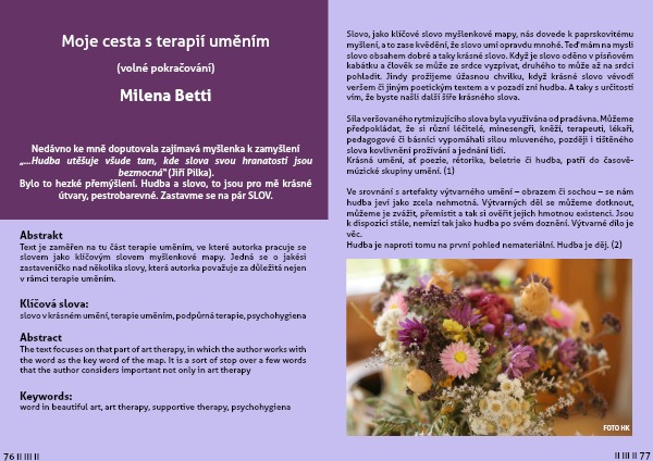 Text je zaměřen na tu část terapie uměním, ve které autorka pracuje se slovem jako klíčovým slovem myšlenkové mapy. Jedná se o jakési zastaveníčko nad několika slovy, která autorka považuje za důležitá nejen v rámci terapie uměním.