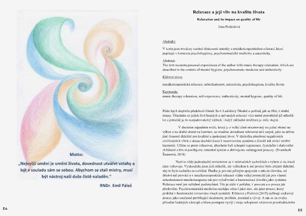 V textu jsou uvedeny osobní zkušenosti autorky s muzikoterapeutickou relaxací, které