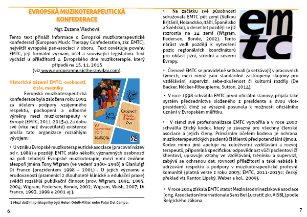 • Členové EMTC se pravidelně setkávali (a setkávají) v pracovních týmech, mezi nimiž jsou standardně zastoupeny skupiny pro vzdělávání, supervizi, sebe-zkušenost či kulturní rozdíly (De Backer, Nőcker-Ribaupierre, Sutton, 2014).