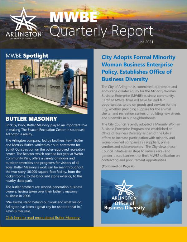 The City of Arlington is committed to promote and encourage greater equity for the Minority Woman Business Enterprise ( MWBE ) business community . Certified MWBE firms will have full and fair opportunities to bid on goods and services for the City , whether providing supplies for the animal shelter and recreation centers or building new streets and sidewalks in our neighborhoods .