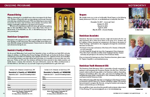 • Participate in the prayer and mission of the Sisters of St. Dominic of Amityville
