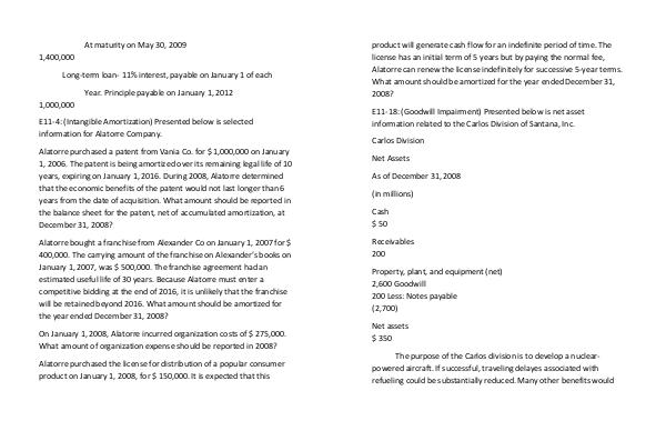 Alatorre bought a franchise from Alexander Co on January 1, 2007 for $