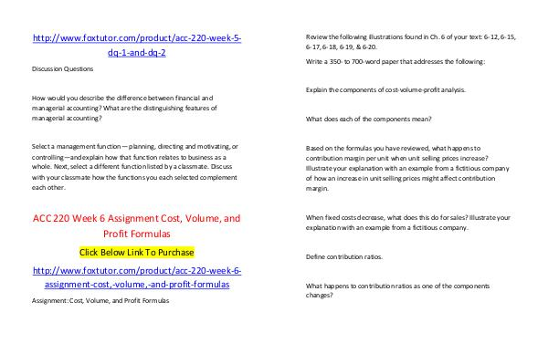 ACC 220 Week 6 Assignment Cost, Volume, and