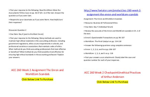 • Review the accounts of the Enron and WorldCom scandals in Ch. 2 of