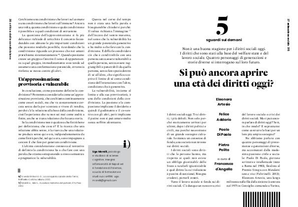 Non è una buona stagione per i diritti sociali oggi. I diritti che sono stati alla base del welfare state e del lavoro sociale. Quattro personaggi di generazioni e storie diverse si interrogano sul loro futuro.