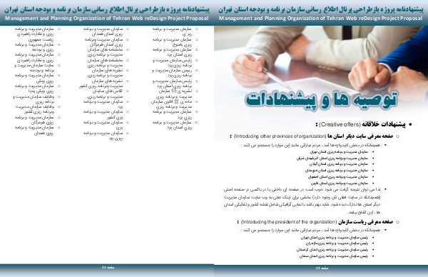 پیشنهادنامه پروژه بازطراحی پرتال اطلاع رسانی سازمان برنامه و بودجه استان تهران Management and Planning Organization of Tehran Web reDesign Project Proposal
