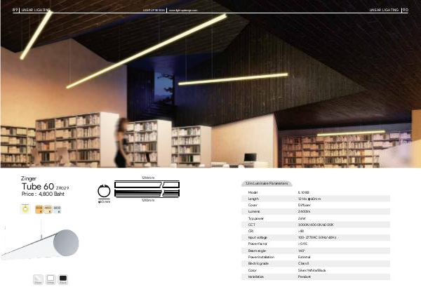 89 LINEAR LIGHTING LIGHT UP DESIGN Zinger 1214mm Tube 60 ZR029 Price : 4,800 Baht φ 60mm 1210mm www.lightupdesign.com