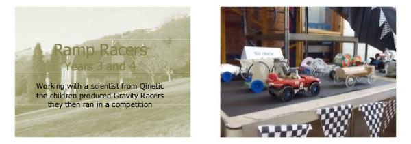Ramp Racers Years 3 and 4 Working with a scientist from Qinetic the children produced Gravity Racers they then ran in a competition