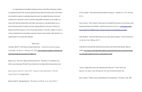 The implementation of mandatory minimum sentences in the War on Drugs has resulted