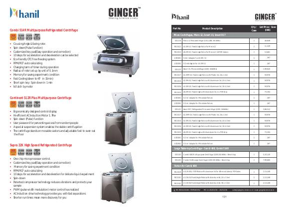 Ergonomically designed control display Hi-efficient AC lnduction Motor 1.7Kw Spin down( Pulse) function User password for perventing access from random people A special suspension system enables the stable centrifugation The centrifuge stands on movable castors and adjustable feet to even out the floor