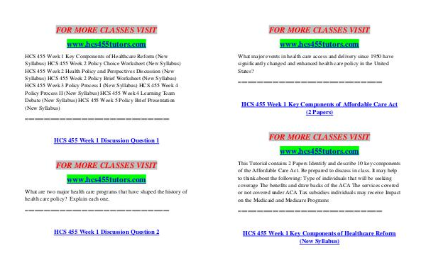 HCS 455 Week 3 Policy Process I (New Syllabus) HCS 455 Week 4