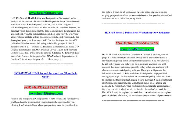 HCS 455 Week 2 Health Policy and Perspectives Discussion Health