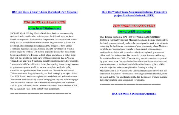 HCS 455 Week 2 Policy Choice Worksheet Policies are constantly