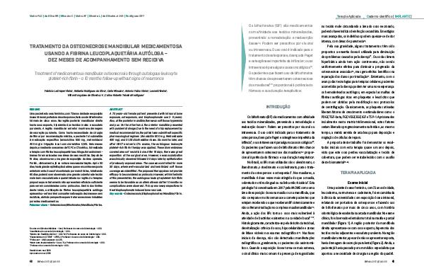 TRATAMENTO DA OSTEONECROSE MANDIBULAR MEDICAMENTOSA USANDO A FIBRINA LEUCOPLAQUETÁRIA AUTÓLOGA – DEZ MESES DE ACOMPANHAMENTO SEM RECIDIVA