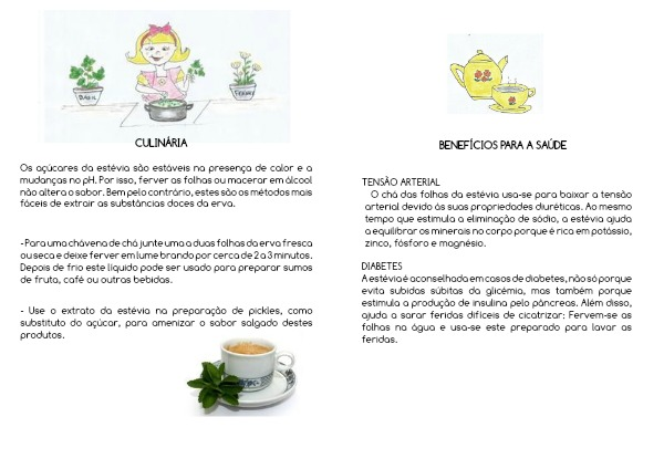 - Use o extrato da estévia na preparação de pickles, como substituto do açúcar, para amenizar o sabor salgado destes produtos.