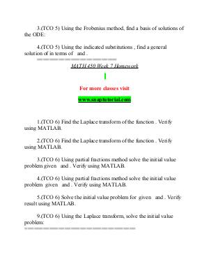 5.(TCO 6) Solve the initial value problem for given and . Verify