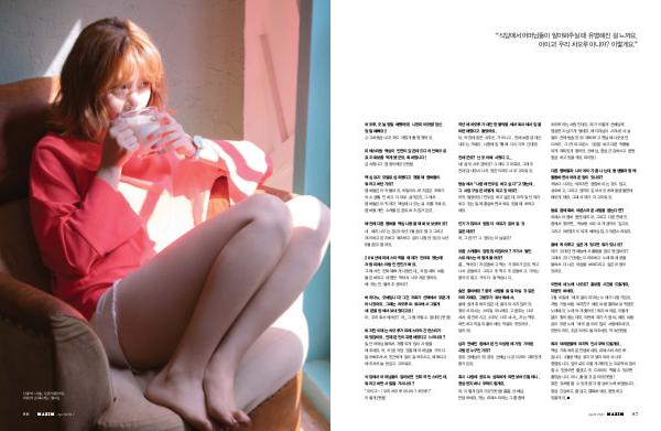 다홍색 니트는 오렌지 플라워, 하늘색 손목시계는 필그림. 8 6 m a x i m April 2017