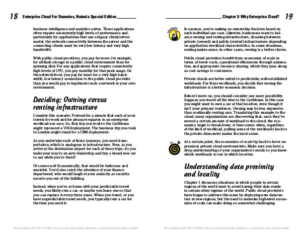 Before I move on, you should consider one more possibility. Suppose you travel all the time to the Caribbean. In this case you might want to own a car at that location, even though it isn’ t your primary residence. Owning may be less expensive than continually renting cars. Translating this example to the cloud, many organizations are discovering that, once they’ ve moved a certain amount of workload to the cloud, the economics begin to break down. A time comes when, regardless of the kind of workload, pulling some of the workloads back to the private datacenter makes the most sense.