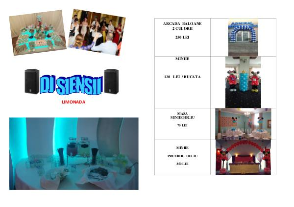 ARCADA BALOANE 2 CULORII 250 LEI MINIIE 120 LEI / BUCATA MASA MINIIE HELIU 70 LEI MINIIE PREZIDIU HELIU 350 LEI