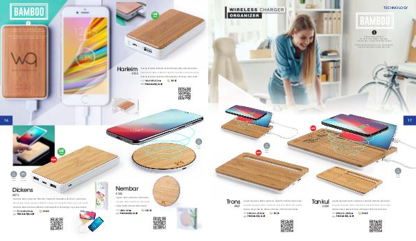 Cargador Organizador. Bambú. Inalámbrico. Salida USB. 1000 mA. Cable Incluido.