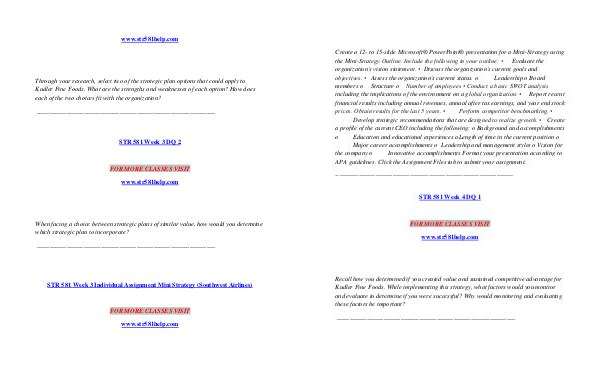 STR 581 Week 3 Individual Assignment Mini Strategy (Southwest Airlines)