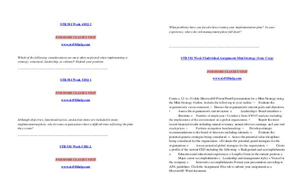 the Mini-Strategy Outline. Include the following in your outline: • Evaluate the
