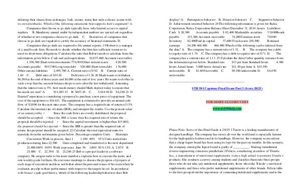 • Since the capital investment is higher than $ 15,000, the proposal should be rejected. • Since the IRR is greater than the required rate of return, the proposal should be accepted. 22 Calculate the total equivalent units for materials from the information given below. Percentage complete Units Materials