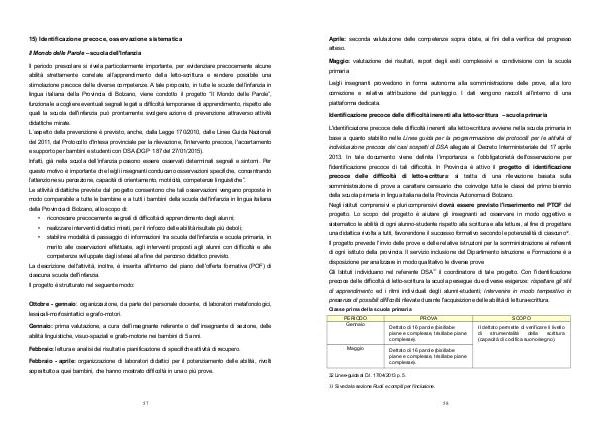 l'identificazione precoce di tali difficoltà. In Provincia è attivo il progetto di identificazione