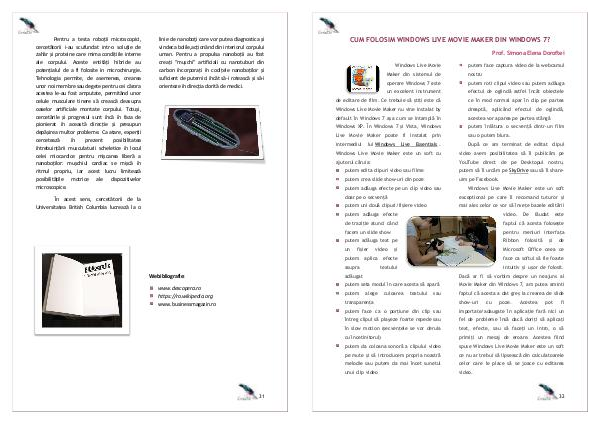 Windows Live Movie Maker din sistemul de operare Windows 7 este un excelent instrument de editare de film. Ce trebuie să știți este că Windows Live Movie Maker nu vine instalat by default în Windows 7 așa cum se intamplă în Windows XP. În Windows 7 și Vista, Windows Live Movie Maker poate fi instalat prin intermediul lui Windows Live Essentials. Windows Live Movie Maker este un soft cu ajutorul căruia: putem edita clipuri video sau filme putem crea slide show-uri din poze putem adăuga efecte pe un clip video sau doar pe o secvență putem uni două clipuri / fișiere video putem adăuga efecte de traziție atunci când facem un slide show putem adăuga text pe un fișier video și putem aplica efecte asupra textului adăugat putem seta modul în care acesta să apară putem alege culoarea textului sau transparența putem face ca o porțiune din clip sau întreg clipul să playeze foarte repede sau în slow motion( secvențele se vor derula cu încetinitorul) putem da coloana sonoră a clipului video pe mute și să introducem propria noastră melodie sau putem da mai încet sunetul unui clip video