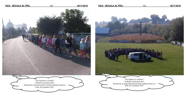 SGS - SCOALA ALTFEL - 43 - ”Noi împotriva violenței” ”Polițiștii, prietenii noștri” Parteneriat cu Inspectoratul de Poliție Județean Suceava Luni, 02 octombrie 2017 2017-2018