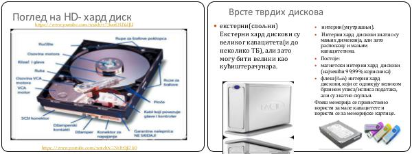 • флеш( flash) интерни хард дискови, који се одликују великом брзином уписа / исписа података, али су знатно скупљи.