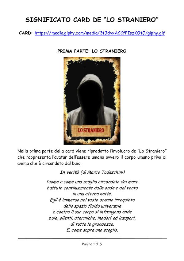 SIGNIFICATO CARD DE “LO STRANIERO”