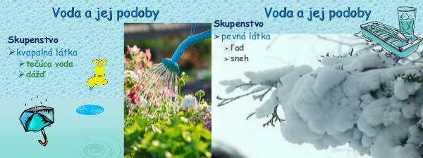 Voda a jej podoby Skupenstvo kvapalná látka tečúca voda dážď