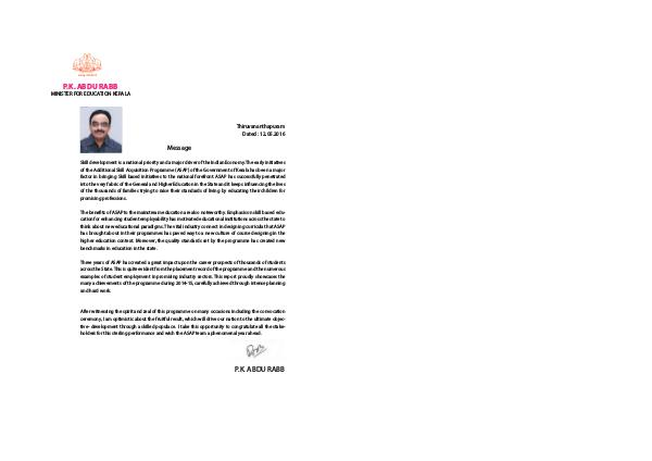 Three years of ASAP has created a great impact upon the career prospects of thousands of students across the State. This is quite evident from the placement record of the programme and the numerous examples of student employment in promising industry sectors. This report proudly showcases the many achievements of the programme during 2014-15, carefully achieved through intense planning and hard work.