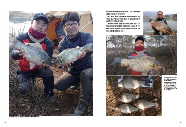 임지석(왼쪽) 박영환 씨가 자신들이 낚아낸 연화지 대형붕어를 들어 보인다. 90