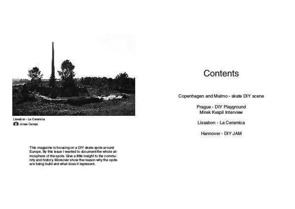 This magazine is focusing on a DIY skate spots around Europe. By this issue I wanted to document the whole atmosphere of the spots. Give a little insight to the community and history. Moreover show the reason why the spots are being build and what does it represent.