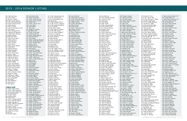 S. Patricia Marie Koehler, OP Mr. George Kollmer, Jr. S. Marie Aimee Koonmen, OP Mr. & Mrs. Roger Kramer Ms. Pat Clancy Kriss Mr. & Mrs. William Kuhn Ms. Valerie Kujawski Ms. Laurel Kurnides Mr. & Mrs. Robert La May Mrs. Joan Lafond Ms. Loretta M. Lagana Mr. & Mrs. Louis Lakusta Ms. Maureen Lambe Mrs. Veronica E. Lane Mrs. Mary Ann Lang Mr. & Mrs. Robert Langone Mr. John Lannig Mr. Robert F. Laporta Mr. & Mrs. Frank Lappin Mr. Mark LaRocca Mrs. Eileen Larrabee Mr. Richard Lata Mr. & Mrs. Craig Laub Rev. Robert E. Lauder Mr. & Mrs. Alfred Lepore Ms. Maureen Lewin Ms. JoAnne Librie Mrs. Mary Licciardi Mr. & Mrs. Julius Lisner Mr. & Mrs. John Little Ms. Lisa M. Griffith Mr. & Mrs. John Lombardo Mr. & Mrs. Richard Lomot Mr. & Mrs. James F. Lonergan Mrs. Kerry Kahn Ms. Joanna Loonan Ms. Eileen Loughran S. Ann Marie Lubisic, OP Mrs. Ingeborg Lucie Mr. & Mrs. Robert H. Lutz Mr. & Mrs. Christopher Lynch Dr. & Mrs. Peter Lynch Ms. Joan Mackey Ms. Karen A. Madden Mr. & Mrs. Thomas F. Mader S. Loretta Maggio, OP Mr. & Mrs. Frederick Magovern The Maguire Family Mrs. Carole Maguire Mr. & Mrs. John Mahoney Msgr. John H. Maksymowicz Mr. & Mrs. Thomas Malley Ms. Marjorie Malone Miss Mary E. Malone Mr. & Mrs. Robert Malone Mrs. Jean Maloney Mr. Kenneth S. Maloney Ms. Cathy Malvino Mrs. Janice Manaskie Mrs. Patricia Maniaci Mrs. Patricia Manning Ms. Sharon A. Mannix Ms. Karen Manolis Ms. Lorraine Marciano Mr. & Mrs. Daniel J. Mari Mr. & Mrs. Jan P. Marshall Mr. & Mrs. John Martuge Mr. C. Richard Marcheski |