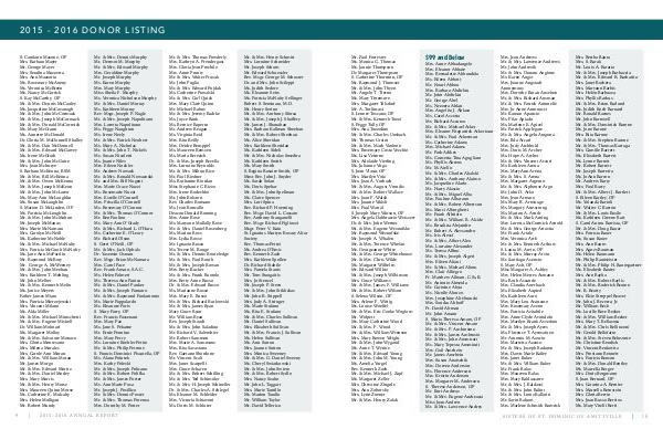Mr. Paul Forrester Ms. Monica G. Thomas Ms. Jannie Thompson Dr. Margaret Thompson S. Catherine Thornton, OP Mr. Raymond J. Thumser Mr. & Mrs. John Thyen Mr. Angelo T. Tierno Ms. Mary Tittemore Mrs. Margaret Tolsdorf Mr. A. Torlincasi S. Lenore Toscano, OP Mr. & Mrs. Kenneth Tozzi S. Peggy Tully, OP Mrs. Ana Tuzzolino Mr. & Mrs. Charles Umbach Mr. Thomas Ursini Mr. & Mrs. Mark Vanloon Mrs. Rosemary Costa Vecchio Ms. Lisa Vetrone Mrs. Adelaide Vierling Ms. Julianne Virga S. Joan Vlaun, OP Mrs. Marilyn Volz Mrs. Joan A. Vorbach Mr. & Mrs. August Vrondis Mr. & Mrs. Robert Wallace Mrs. Joan F. Walsh Mrs. Joanne Walsh Mrs. Paul Watral S. Joseph Mary Watson, OP Mrs. Angela Dabbraccio Weissert Dr. & Mrs. John Werner Mr. & Mrs. Eugene Wesnofske Mr. Raymond Wesnofske Mr. Joseph A. Whalen Mr. & Mrs. Terence Whelan Ms. Georgeanne White Mr. & Mrs. George Whitehouse Mr. & Mrs. Chris Wilde Ms. Margaret Wilhelm Mr. Edward Wilkie Mr. & Mrs. Joseph Wilkinson Mrs. Grace Williams Mr. & Mrs. James F. Williams Mr. & Mrs. Robert Wilson S. Selena Wilson, OP Mrs. Arlene F. Wittig Ms. Louise Woelfel Mr. & Mrs. Eric Cooke Woglom Mr. Wolpert Ms. Mary Catherine Wood Mr. & Mrs. P. Wood Mr. & Mrs. William Wrensen Mrs. Mary Bowen Wright Mr. & Mrs. John Wygand Ms. Anne T. Wynne Mr. & Mrs. Edward Young Mr. & Mrs. John M. Young Ms. Amelia Yurgel Rev. Kenneth Zach Mr. & Mrs. Michael J. Zapf Ms. Margaret Zeller Mrs. Christine Zingnle Mrs. Ann Zohorsky Mrs. Lynn Zuener Mr. & Mrs. Henry Zalak |