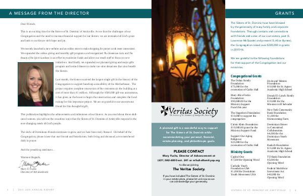 We recently launched a new website and an online store to make shopping for prayer cards more convenient. We expanded the online giving and monthly gift programs and reorganized The Dominican Gala and The Beauty of the Spirit Luncheon in an effort to maximize funds and allow our small staff to focus on new initiatives. And finally, we expanded our planned giving and major gifts program and invited donors to make tax-wise donations that also benefit the Sisters.