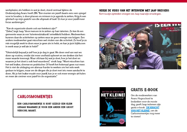 "Zeker,” zegt Jaap, “door mensen in te zetten op hun talenten. Zo ken ik een gemeente waar ze een ‘talentendatabank’ ontwikkeld hebben. Medewerkers kunnen daar de activiteiten op zetten waar ze geen energie van krijgen. Een andere medewerker gaat misschien wel stralen van die activiteit. Zo hoef je zo min mogelijk werk te doen waar je geen zin in hebt, en kan je juist bijklussen in werk waar je wél zin in hebt!"