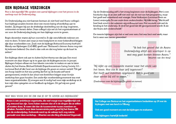 Op de Onderwijsdag zelf is het vroeg beginnen voor de bijdragers. Het is een hectische dag en ze zien zelf niet veel van de rest van het programma, maar het geeft wel ontzettend veel energie. Peter Verkoeijen (Lectoraat Brein en Leren) verzorgde Zin van onzin leren onderscheiden. Hij blikt terug: “Wat ik zelf heel leuk vond is dat iedereen erg enthousiast was. Het versterkt ook wel de binding in het onderwijs. Ik vind het goed dat dit georganiseerd wordt. Ik zie dat Avans zich onderscheidt.”