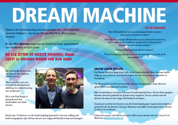 Tijdens de Onderwijsdag introduceerden we – met keynote Spencer Heijnen – de Avans Dream Machine. Wat is jouw droom?